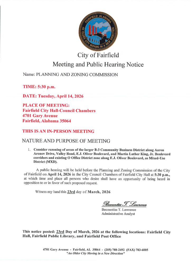 City of Fairfield, Alabama © 2022. All Rights Reserved